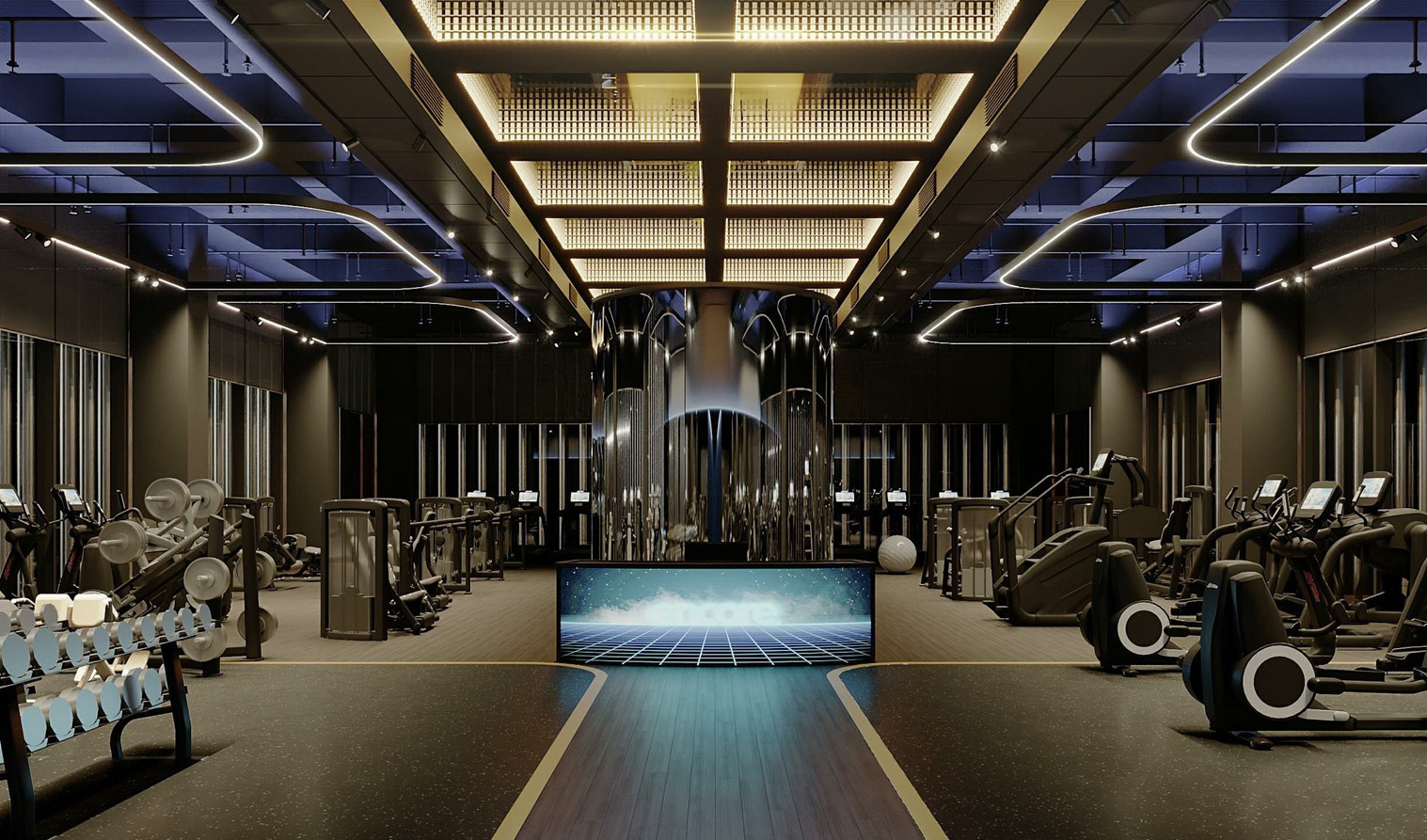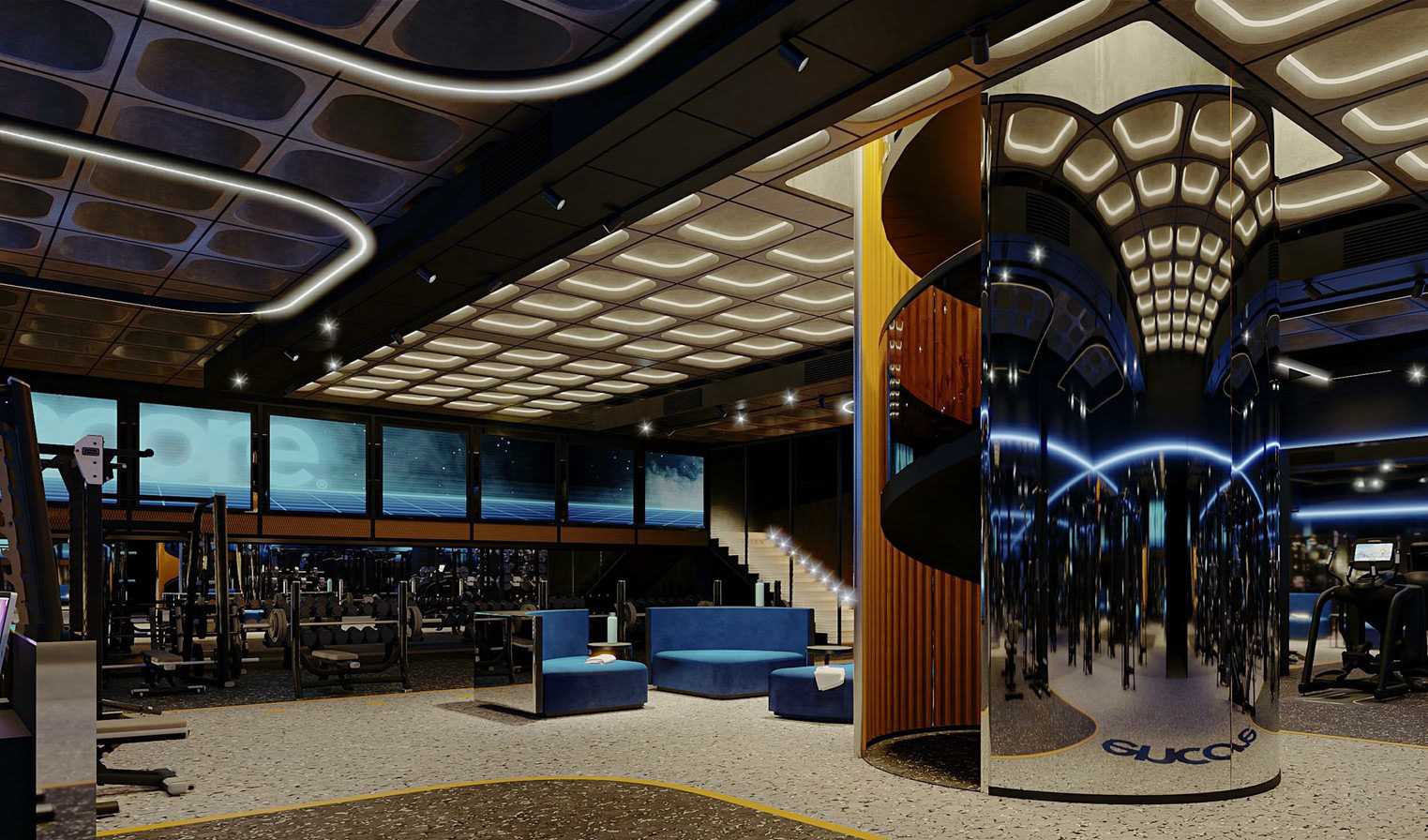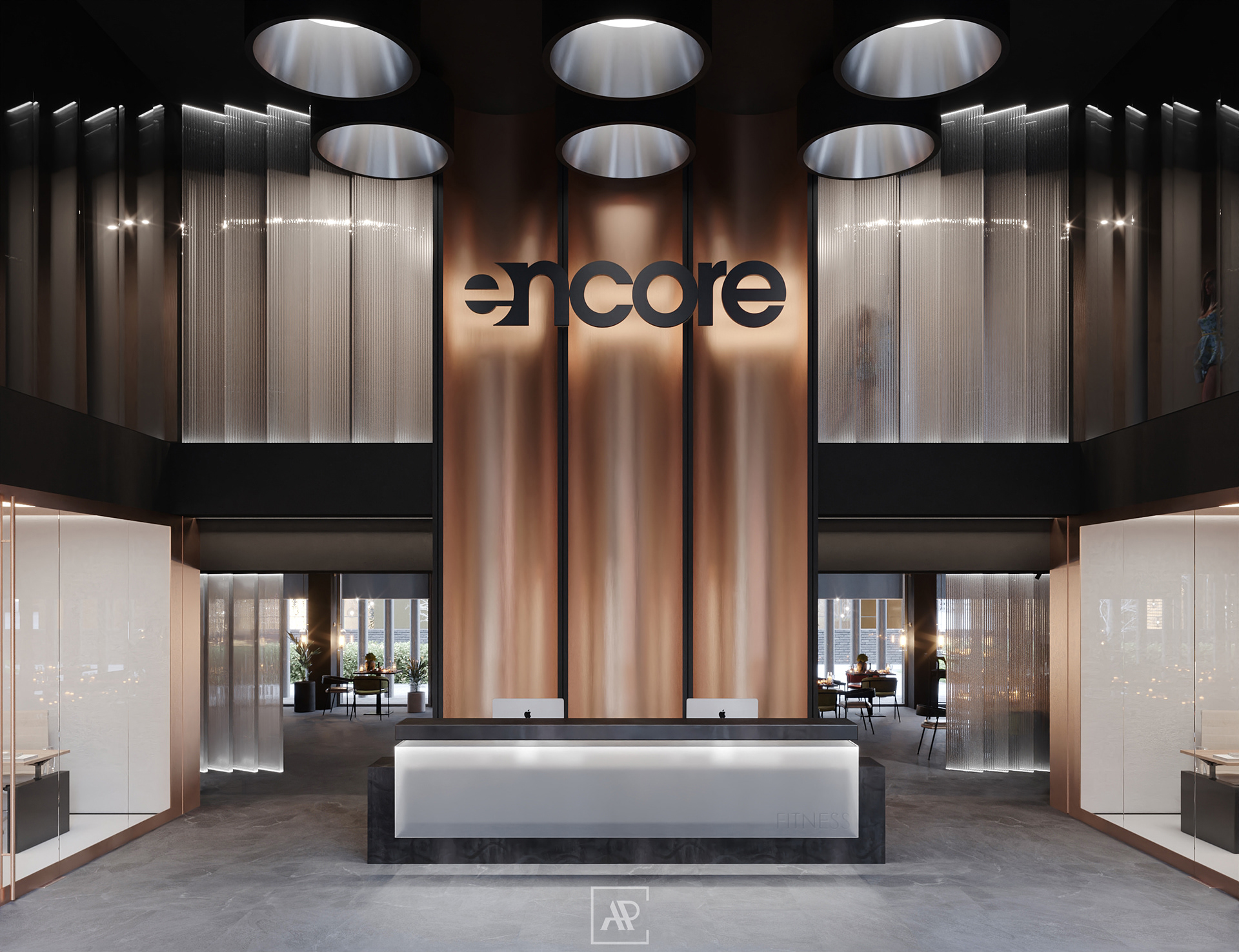 Concept of fitness-club for Encore fitness in residential complex «Lucky».