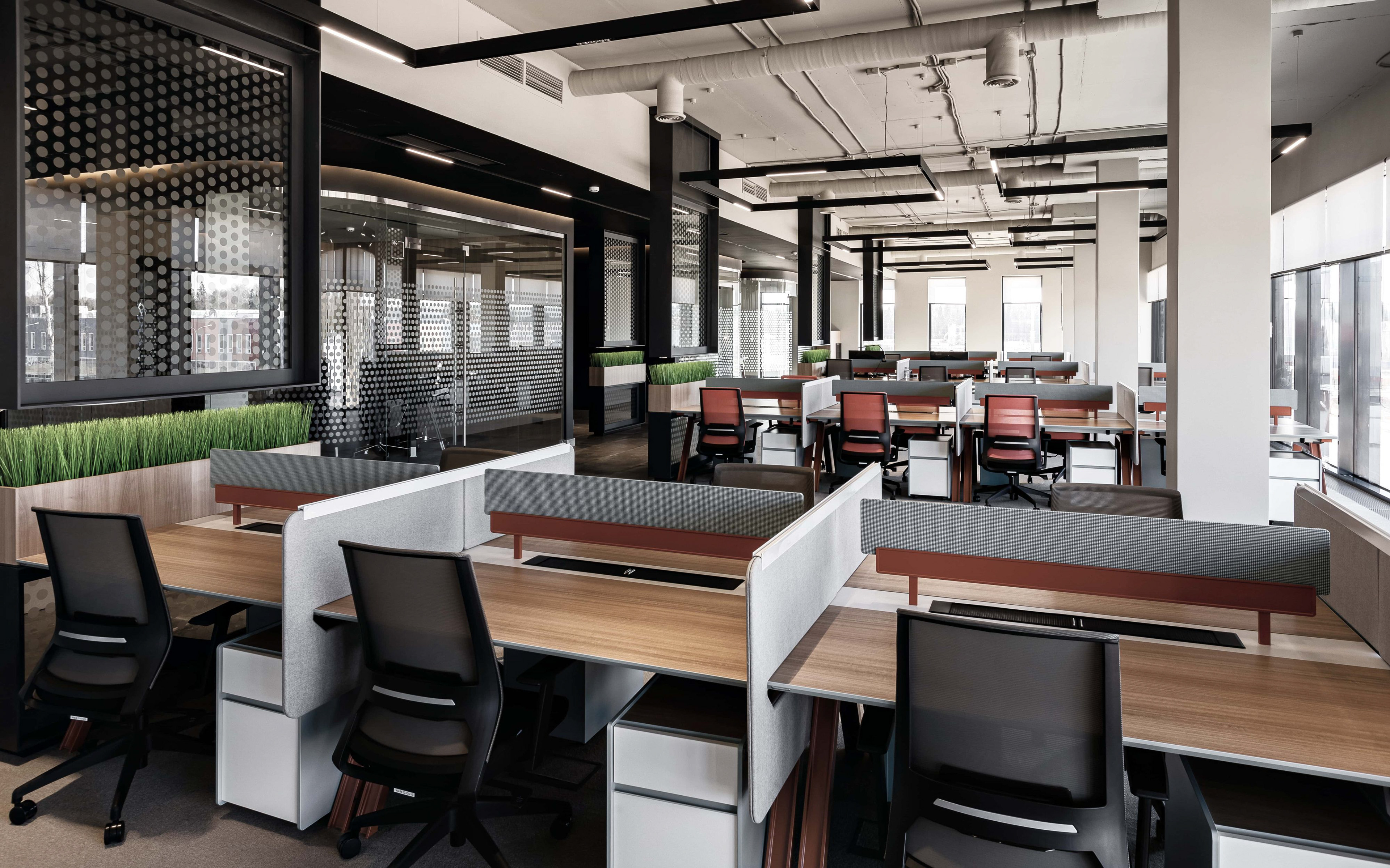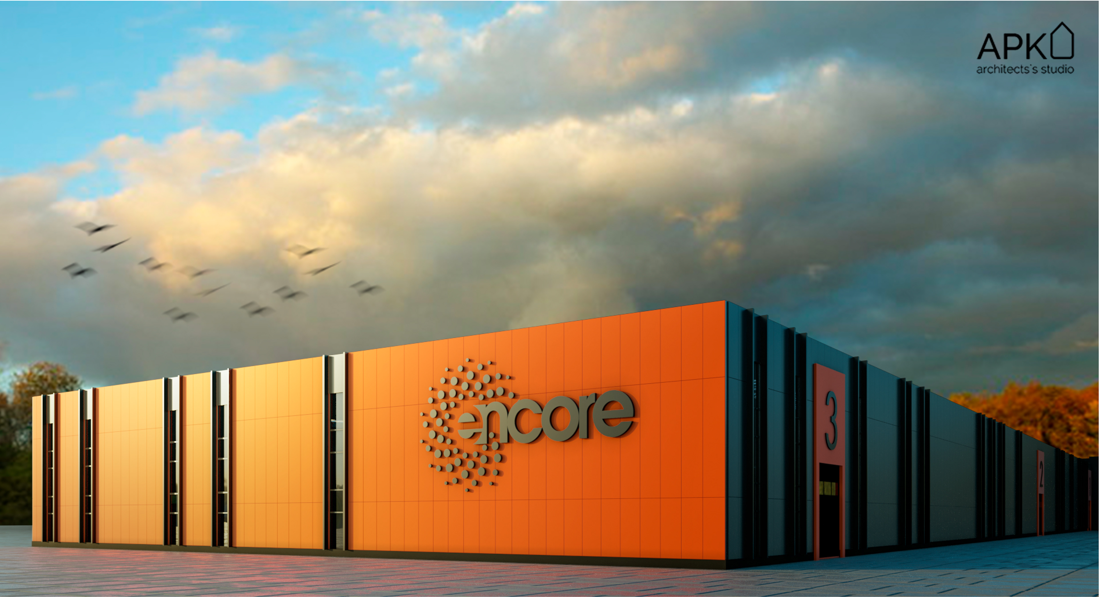 The plant solution for Encore Energy includes a main office and a production building, a master plan, interior design, and a navigation system inside the building.
